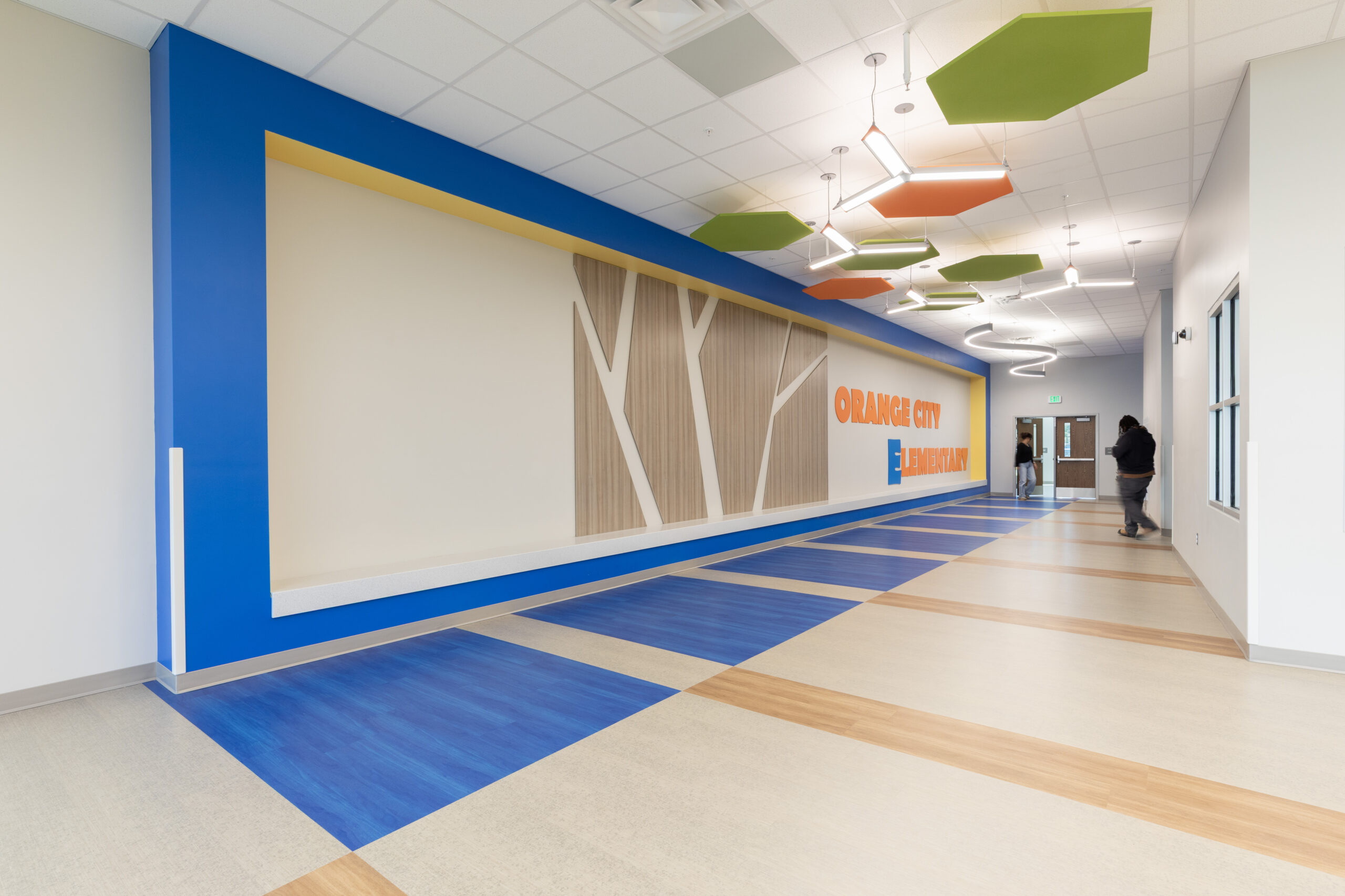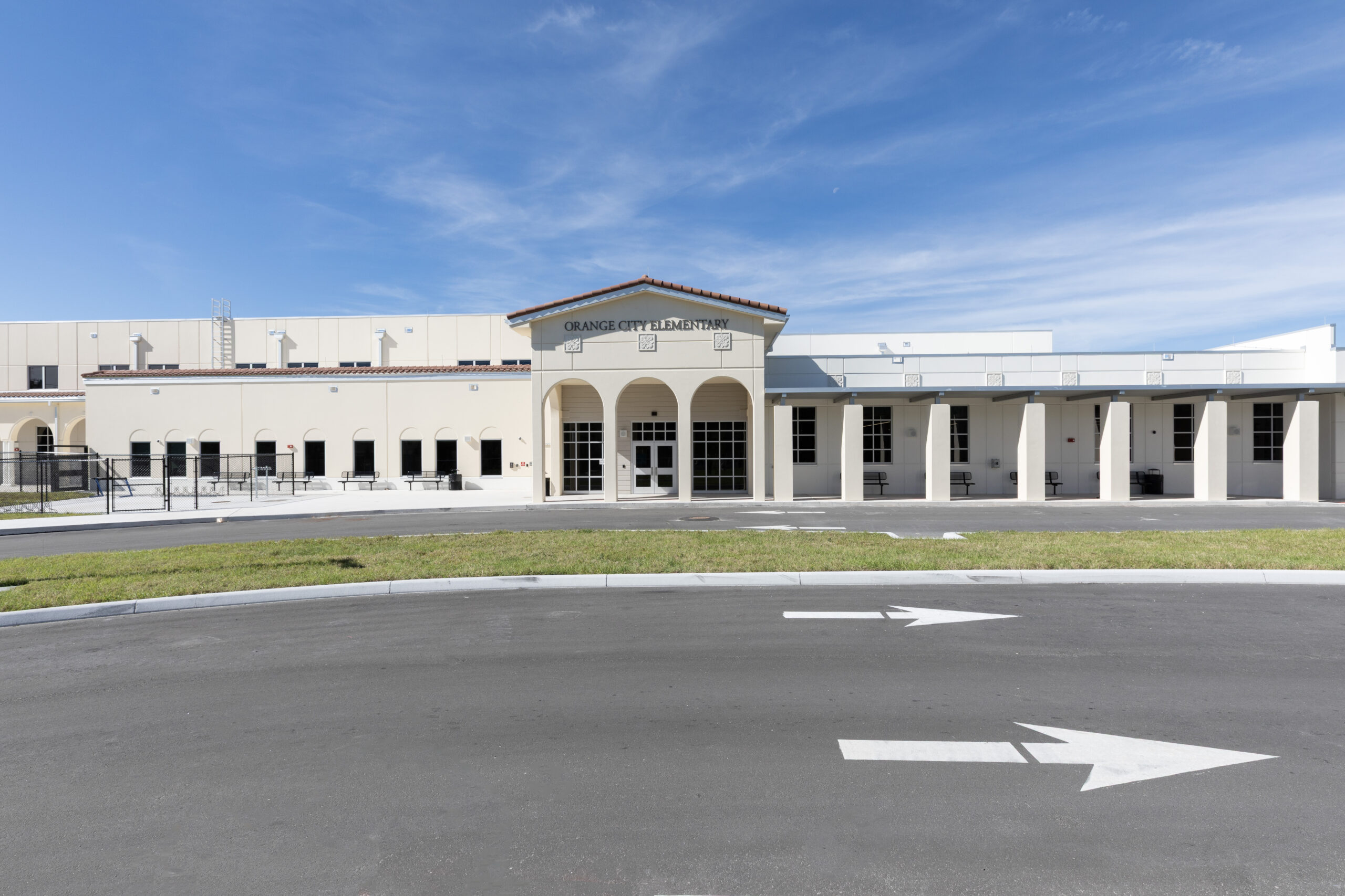 Volusia County Schools- New build and renovation of historic Orange City Elementary celebrates the rich history of the community. The frontage of the new school campus pays homage to the existing mission style architecture. The new design incorporated administration, media, art and music, and 21st century learning environments.